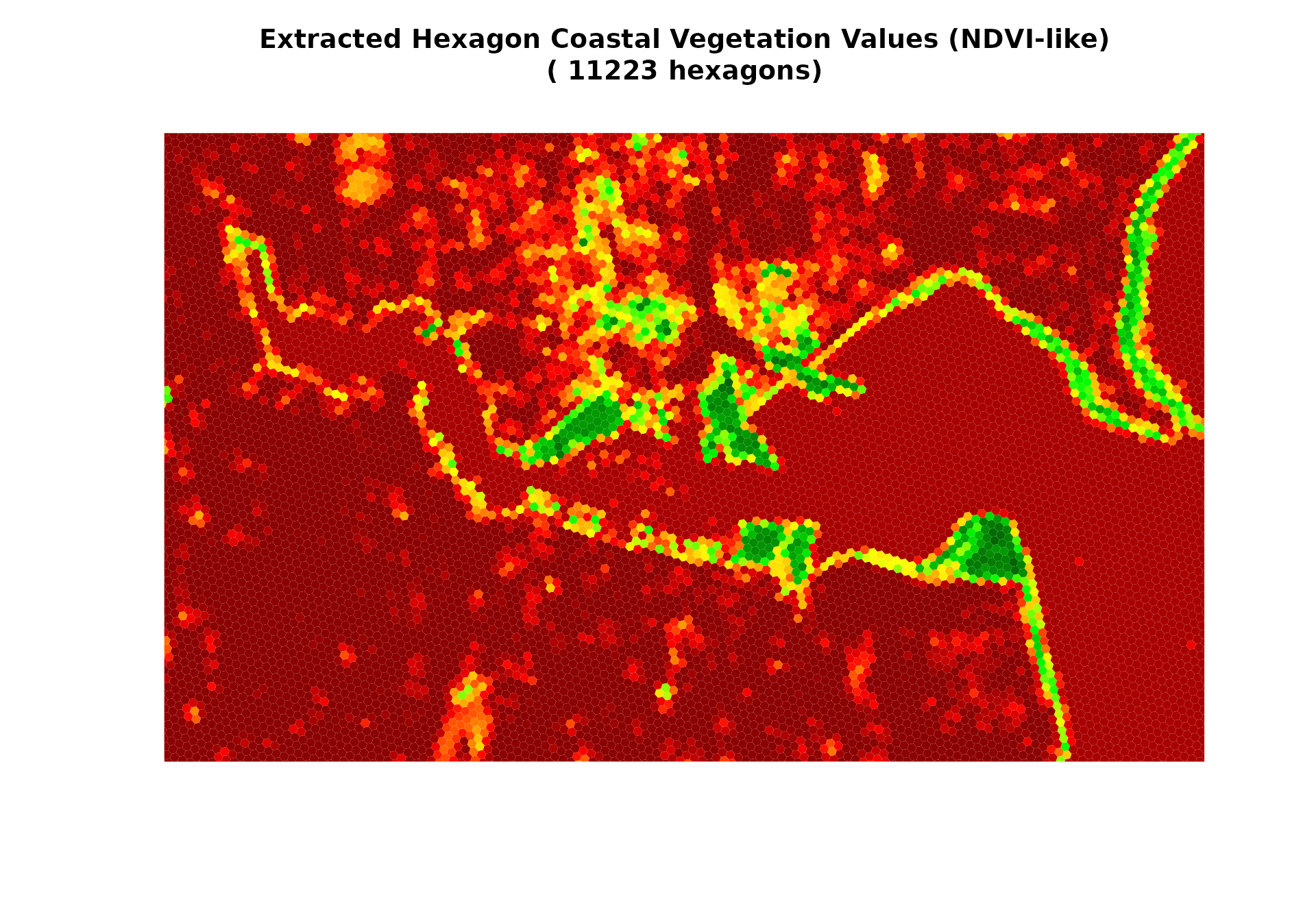 Coastal vegetation data demonstrates hexagonal smoothing effectiveness: